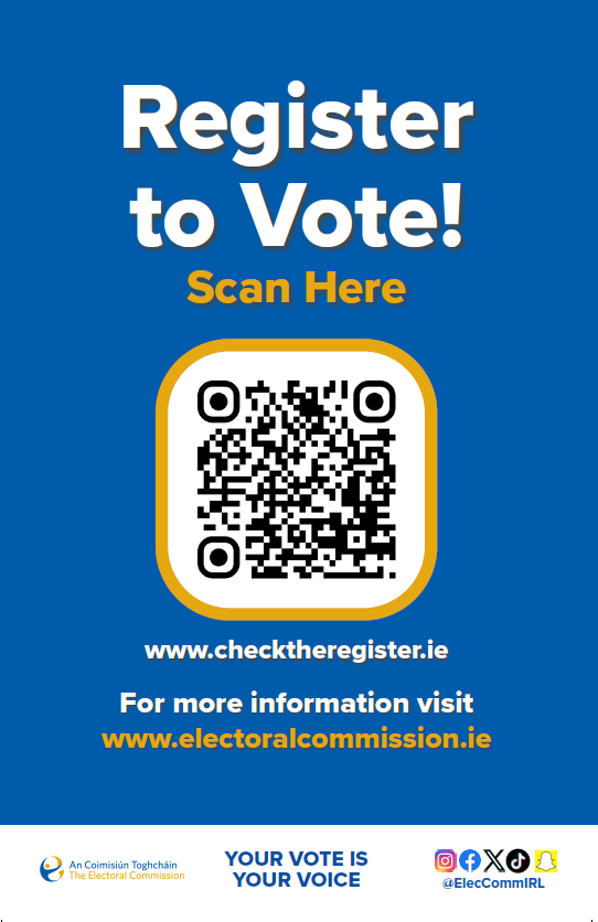 Chun comóradh a dhéanamh ar Lá Idirnáisiúnta an Daonlathais de chuid na Náisiún Aontaithe, a bhíonn ar siúl ar an 15 Meán Fómhair gach bliain, tá an Coimisiún ag eisiúint na mílte póstaer faoi chlárú vótálaithe chuig oifigí poist, leabharlanna, ollscoileanna, aontais mac léinn, oifigí Intreo, suíomhanna sláinte agus ionaid eile ar fud na tíre. Féadfaidh daoine a bhreathnaíonn ar an bpóstaer an cód QR a scanadh gan mhoill, dul go dtí an suíomh gréasáin www.CheckTheRegister.ie, agus a bheith cláraithe le vóta a chaitheamh laistigh de 3 nóiméad.